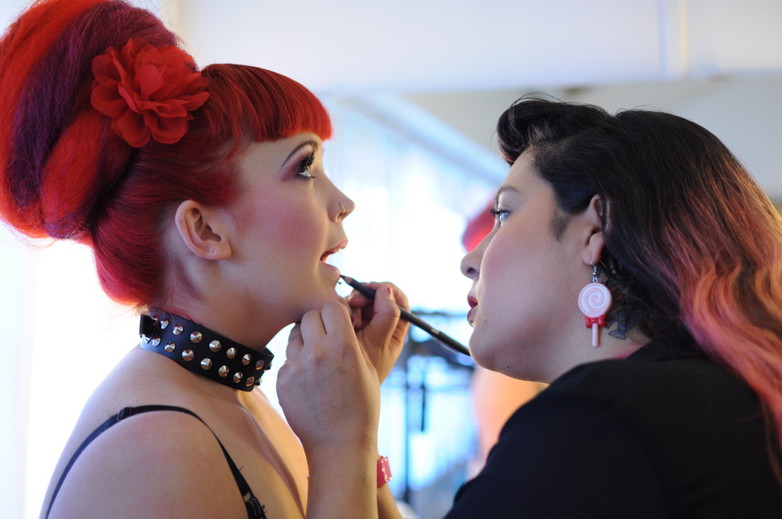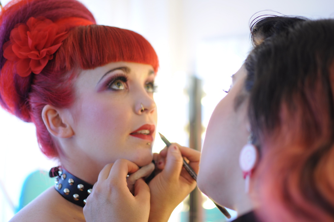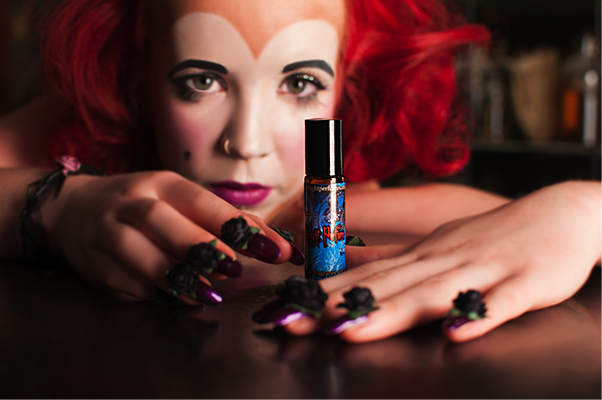 Above left: Redd Rockz with Deep Midnight Perfume oils. Centre: Redd Rockz with Lefae jewellery. Right: Redd Rockz with House Of Harlot catsuit. Make-Up and Hair by Alice Goulding with the assistance of Nicola Bevan. Pictures by Kasia Marszalek / Photokasia